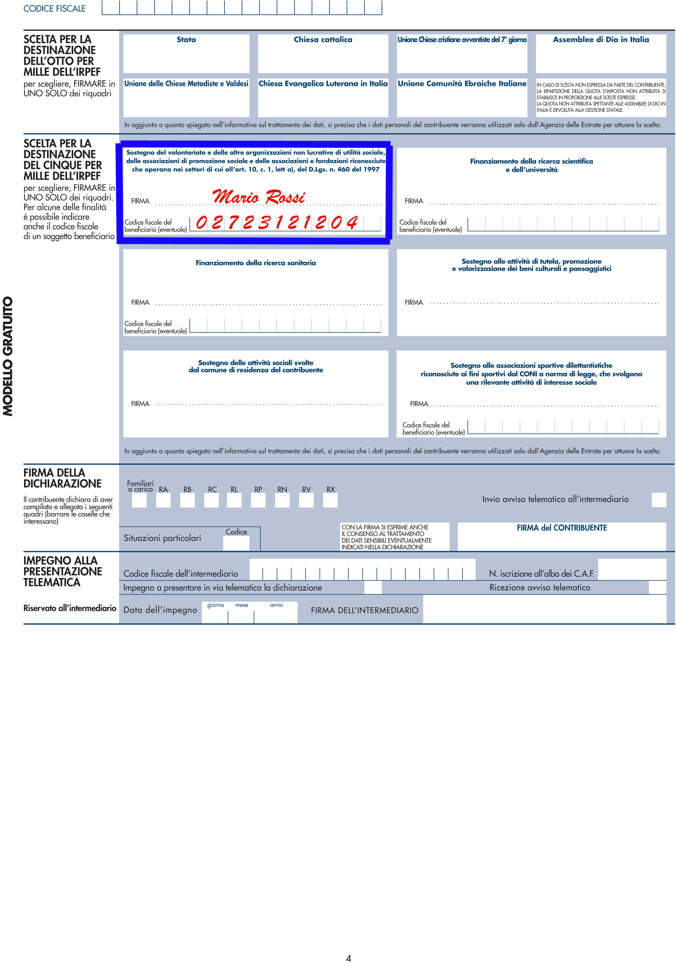allo sportello di un ufficio postale che provvederà a trasmettere la scelta all’Amministrazione finanziaria. Il servizio di ricezione della scheda da parte degli uffici postali è gratuito. L’ufficio postale rilascia un’apposita ricevuta;
